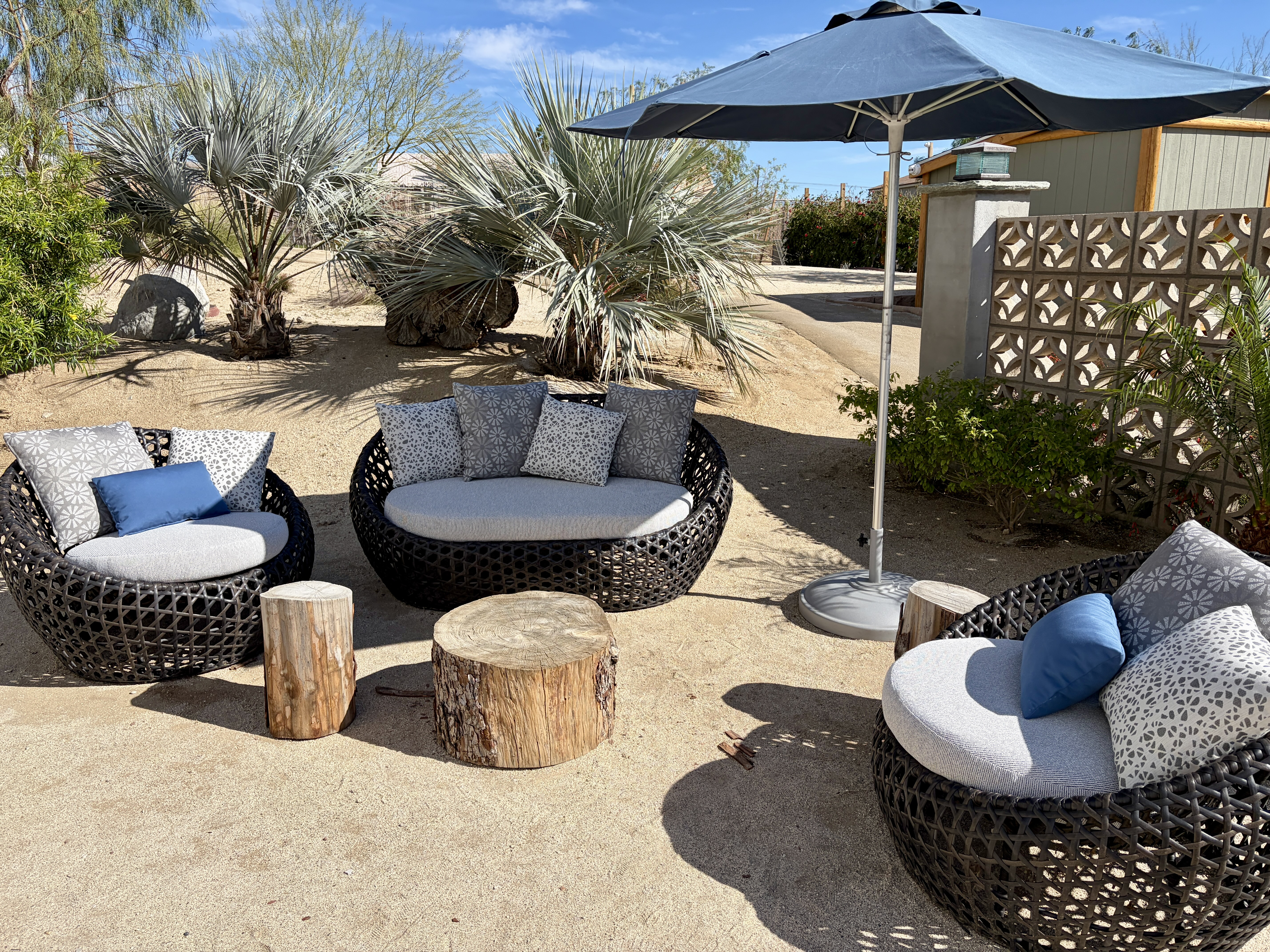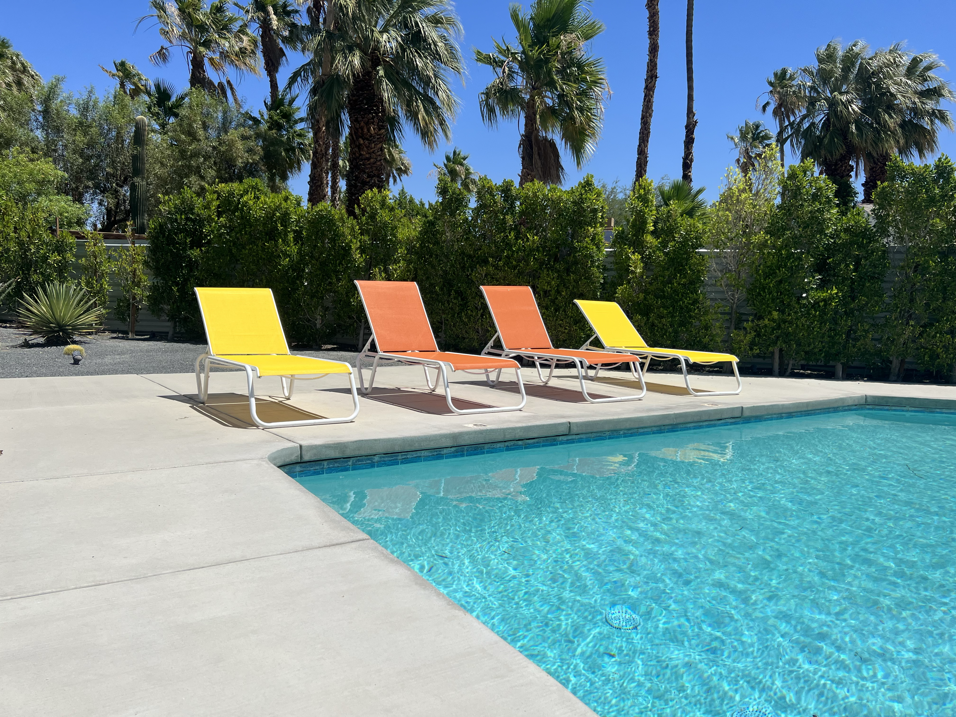 Sling chairs, cushions, umbrellas, grill covers — gorgeous and built for the Coachella Valley sun.
